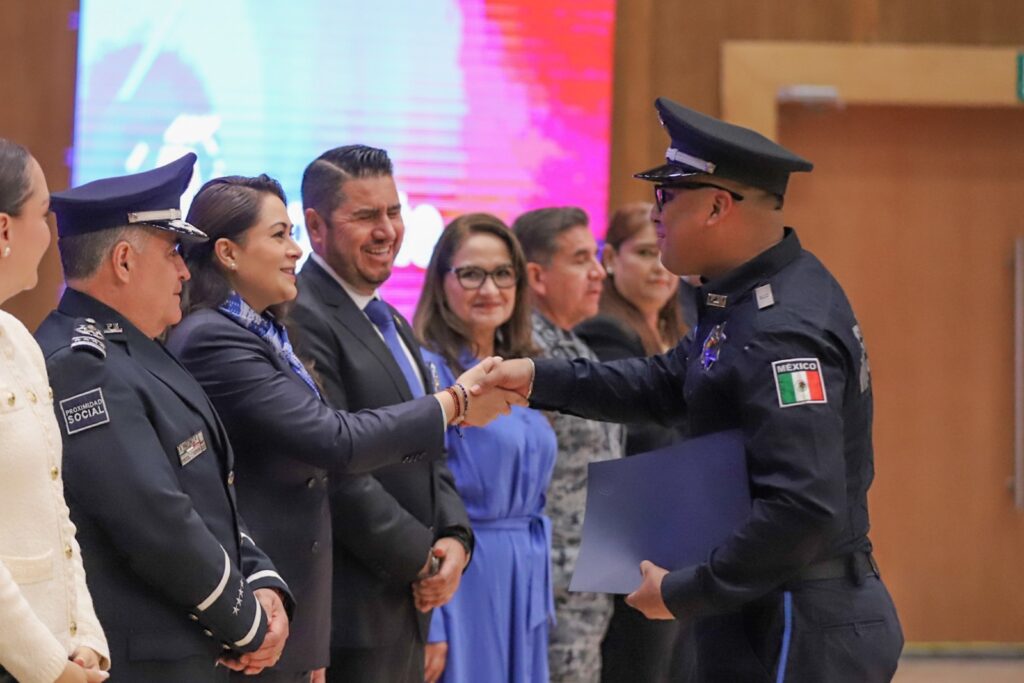 “Mujeres y hombres que han decidido servir a la sociedad, ser policía significa ser el primer contacto del Estado, el rostro cercano de la autoridad y el apoyo inmediato en los momentos más difíciles. A partir de hoy, la sociedad deposita su confianza en ustedes; actúen siempre con apego a la ley, con integridad y firmeza”, enfatizó Martínez Romo.