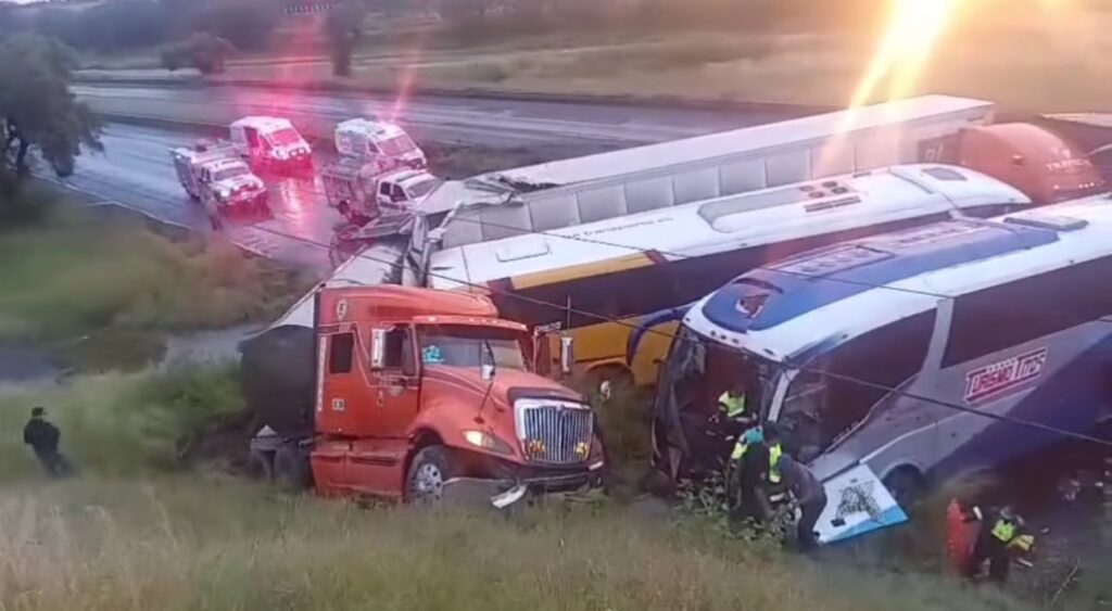 El reporte se recibió en el Servicio de Emergencias 911 minutos antes de las 07:00 horas de este sábado, en el que se informaba que sobre la carretera federal 45 norte la altura del municipio de San Francisco los Romo se había registrado un aparatoso múltiple en el que participaron cuatro unidades pesadas, entre las que estaban involucrados dos autobuses de pasajeros, motivo por el que de inmediato se movilizaron al sitio personal del H. Cuerpo de Bomberos del Estado, Bomberos del Municipio de Pabellón de Arteaga, Policías Estatales, Policías Municipales de San Francisco de los Romo y de Jesús María, Protección Civil, Guardia nacional, personal paramédico de Cruz Roja.