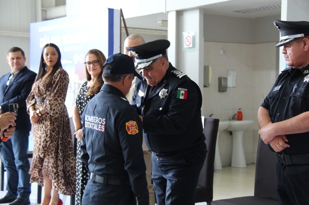 En el marco de la conmemoración del Día del Bombero, el secretario de Seguridad Pública del Estado, Antonio Martínez Romo, hizo un reconocimiento a las y los miembros del H. Cuerpo de Bomberos del Estado de Aguascalientes por su trabajo en beneficio de la ciudadanía, y les hizo entrega de equipo personal para el desempeño de sus labores en el combate de incendios forestales.
