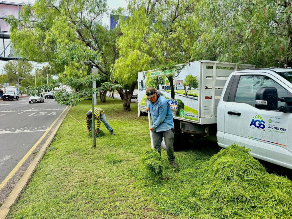 Asimismo, se trabaja en la parte oriente en el camellón central de esta avenida en el tramo comprendido de la calle Juan Bautista a Siglo XIX.