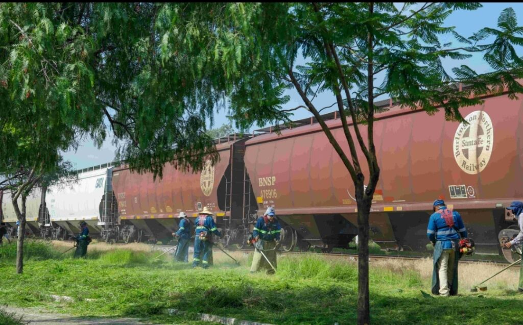 Múltiples cuadrillas de servicios públicos realizaron acciones de desmalezado, arañado y disposición de maleza y residuos sobre los camellones y áreas verdes aledañas a esta importante arteria que cruza la ciudad.