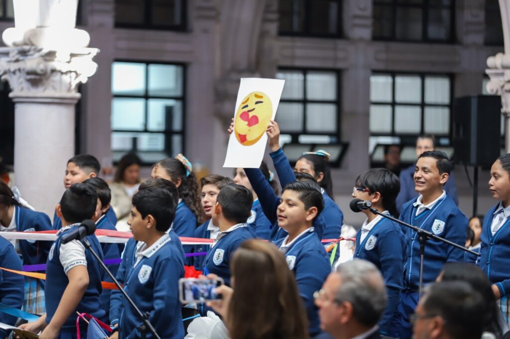 La gobernadora resaltó que el programa de Francés en Escuelas Públicas comenzó en la primaria “Margarita Maza de Juárez”, donde actualmente 414 alumnas y alumnos reciben clases de ese idioma y quienes, como muestra de lo aprendido, interpretaron la canción Roi Lion durante el evento.