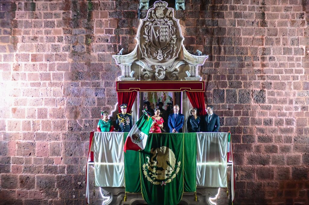 “¡Que viva la unidad de los aguascalentenses y las familias! ¡Viva la paz y la tranquilidad de nuestros pueblos! ¡Viva la libertad y la justicia! ¡Viva la educación y la prosperidad de la gente! ¡Viva el gigante de México! ¡Viva Aguascalientes! ¡Viva México! ¡Viva México!”, gritó ante una plaza que respondió con entusiasmo, en medio del repique de campanas y el Himno Nacional entonado a una sola voz.