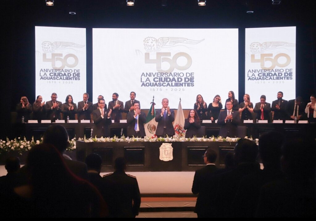 Al encabezar la Sesión Solemne por el 450 Aniversario de la Fundación de la Ciudad, el presidente municipal, Leo Montañez, enalteció la grandeza de Aguascalientes, como ciudad que destaca por su economía, su desarrollo y seguridad, a la que las familias se sienten orgullosas de pertenecer.