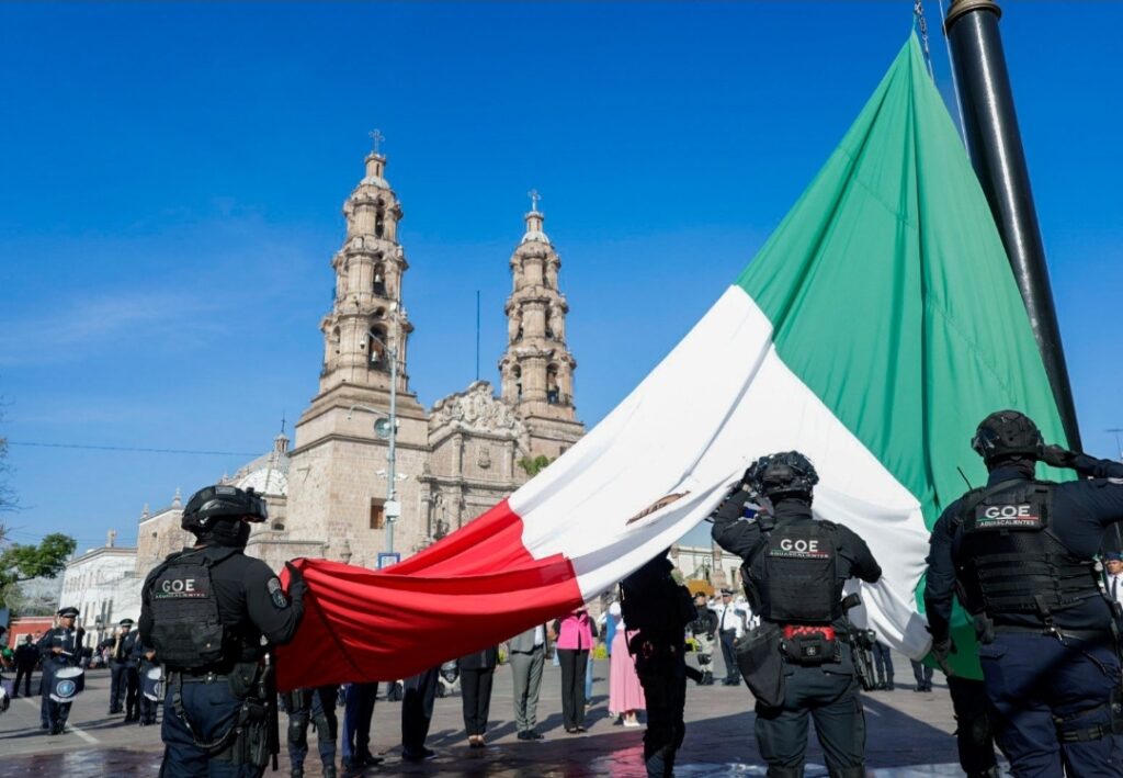 Acompañado por los regidores del H. Ayuntamiento de Aguascalientes y por el titular de la Secretaría de Seguridad Pública del Municipio (SSPM), Gonzalo Pérez Zúñiga, el presidente municipal rindió honores al lábaro patrio en la Plaza Principal, para resaltar los valores cívicos y la proximidad social.
