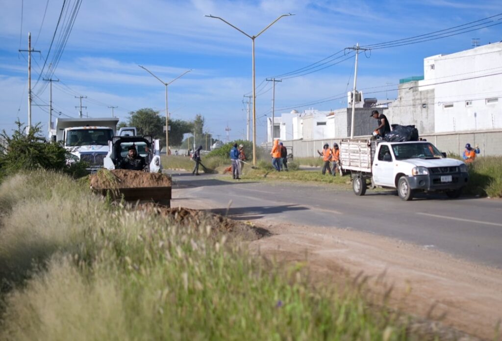 Se desmalezaron 14 mil metros en camellón central y laterales y se recolectaron más de 30 toneladas de maleza, arrastres y basura, con apoyo de maquinaria como cargadores y camiones de volteo.