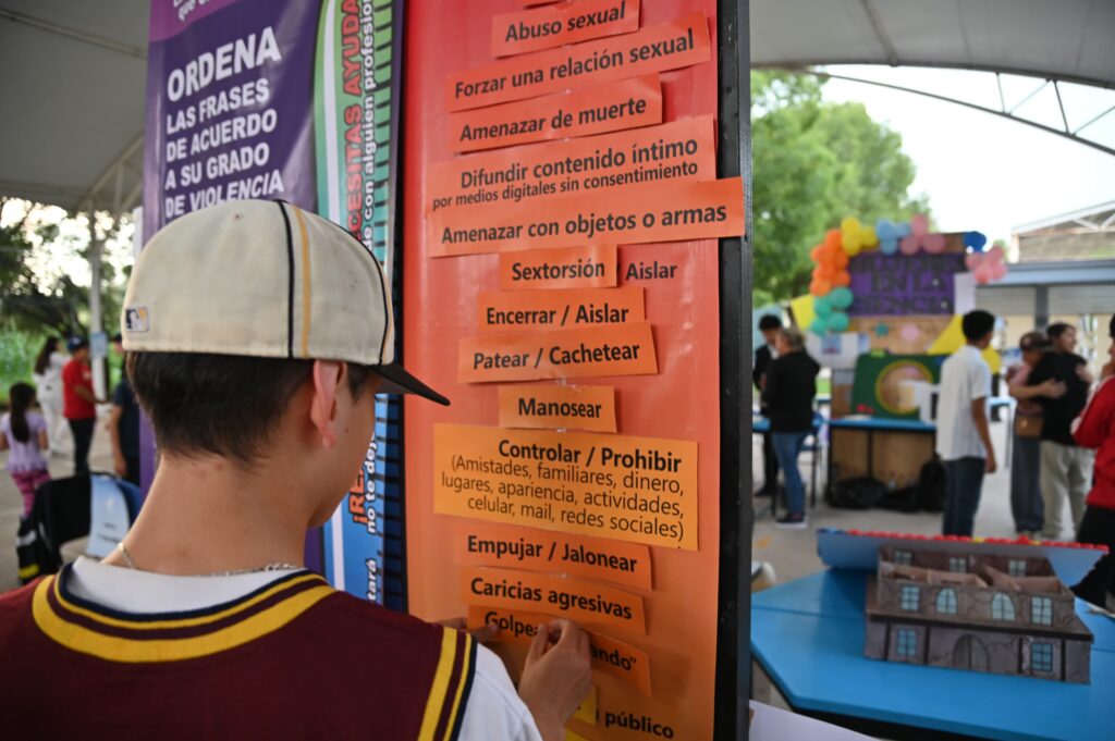 El Gobierno municipal de Jesús María, a través de la Instancia de la mujer, participó en la Feria para Erradicar la Violencia que se llevó a cabo en la Secundaria Técnica No. 36, un proyecto integral que promueve la cohesión y colaboración social el cual no solo involucra a los estudiantes, sino que también busca la participación activa de los padres de familia y autoridades para sensibilizar a toda la comunidad educativa.