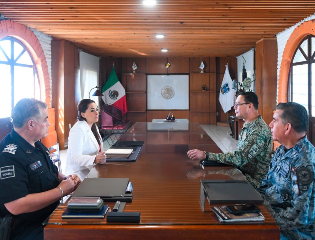 Tere Jiménez participó en una reunión de trabajo con titulares del Ejército Mexicano, Guardia Nacional y Secretaría de Seguridad Pública del Estado, en las instalaciones de la 14/a. Zona Militar.