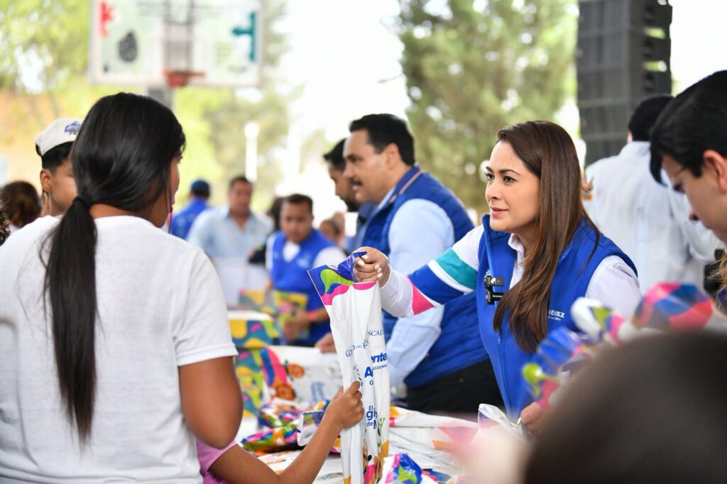 Al comenzar las entregas en los municipios de Cosío y Rincón de Romos, donde se benefició a 2 mil 300 familias, la gobernadora destacó la importancia de garantizar que ningún niño o niña se quede sin estudiar por falta de recursos.