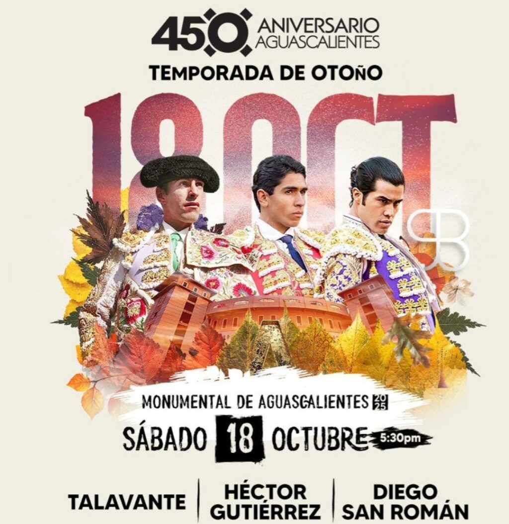 En el marco del 450 Aniversario de la fundación de la ciudad de Aguascalientes, la Monumental Plaza de Toros se vestirá de gala para recibir a tres grandes exponentes de la tauromaquia: Héctor GutiérrezDiego San Román y el reconocido diestro español Alejandro Talavante, quienes lidiarán seis ejemplares de la prestigiada ganadería Santa Bárbara.