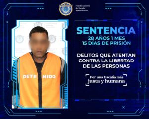 La Fiscalía General del Estado informa que obtuvo sentencia condenatoria en contra de Miguel “N”, por su responsabilidad en la...