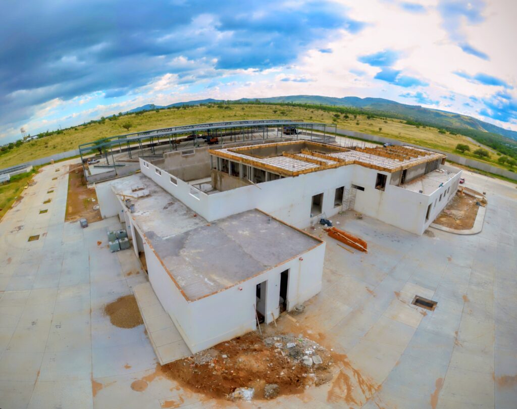 En su primera etapa, el complejo contempla el área de procesos con espacios para matanza, pasillos, baños, lavandería, almacenes y oficinas. A un costado se construye un área de corrales techada con capacidad para 1 mil 800 cabezas de ganado, equipada con paneles solares que permitirán un ahorro significativo y un manejo eficiente de la energía.