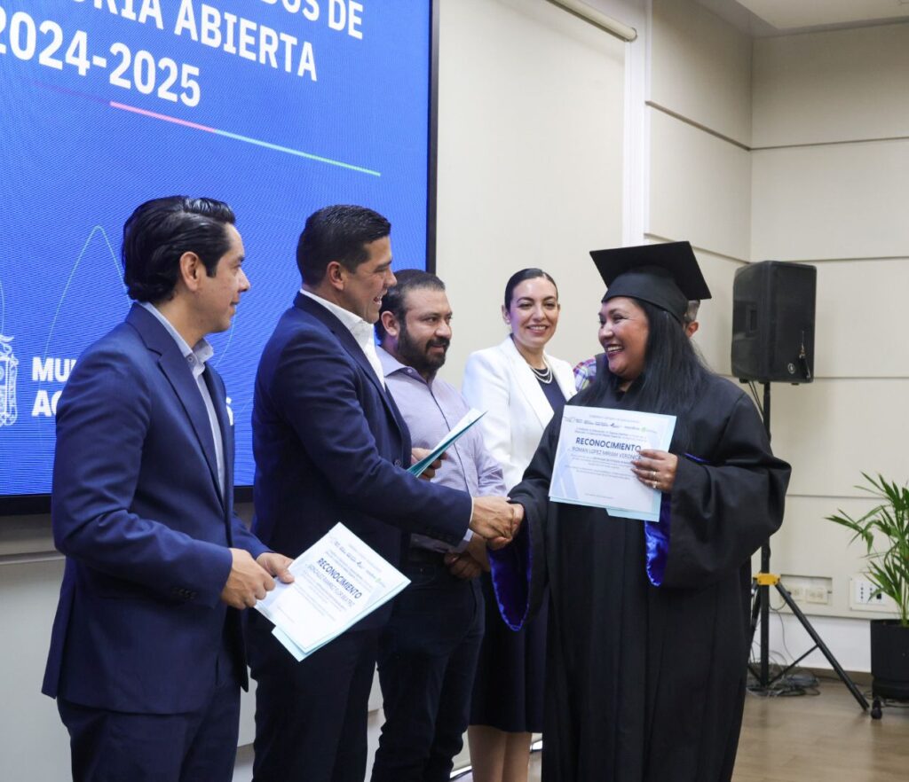 El presidente municipal, Leo Montañez, encabezó la ceremonia de graduación de servidores públicos municipales que culminaron sus estudios de bachillerato, a quienes reconoció como un ejemplo de superación personal y de compromiso para construir un mejor Aguascalientes.