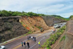 Tras el desprendimiento del cerro registrado en la carretera federal 70 poniente, a la altura de la comunidad de Milpillas,...