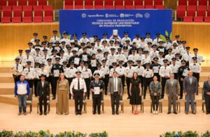 El presidente municipal de Aguascalientes, Leo Montañez encabezó la ceremonia de graduación de 93 policías municipales y estatales de Aguascalientes como Técnicos...