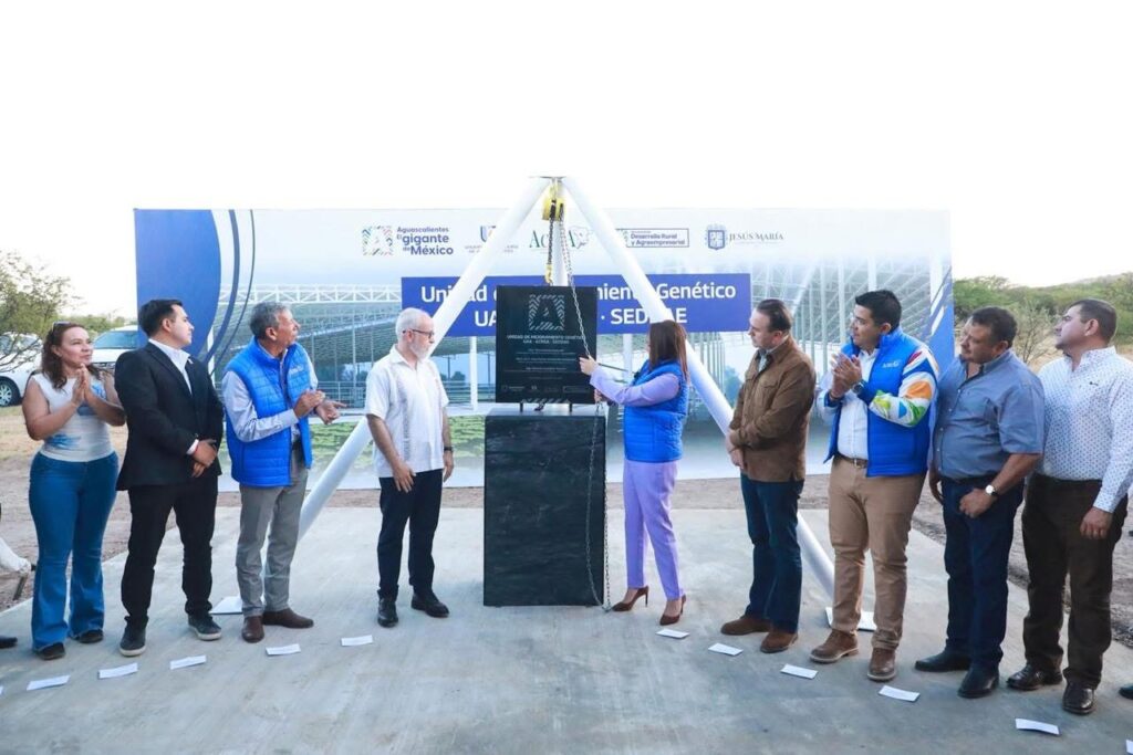 La gobernadora Tere Jiménez encabezó el inicio de la construcción de la Unidad de Mejoramiento Genético para el ganado, cuya sede se ubicará en el Centro Agropecuario Posta Zootécnica de la Universidad Autónoma de Aguascalientes (UAA), en el municipio de Jesús María.